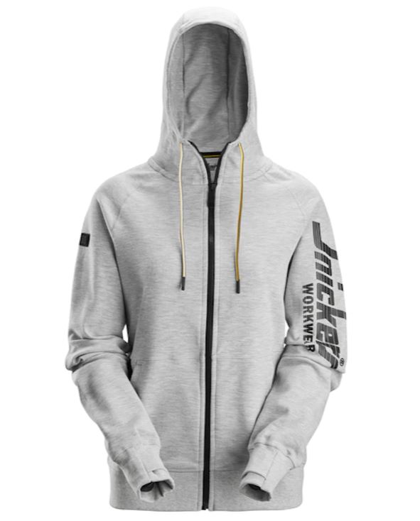 2877 Sudadera mujer con capucha, cremallera completa y logo gris jaspeado
