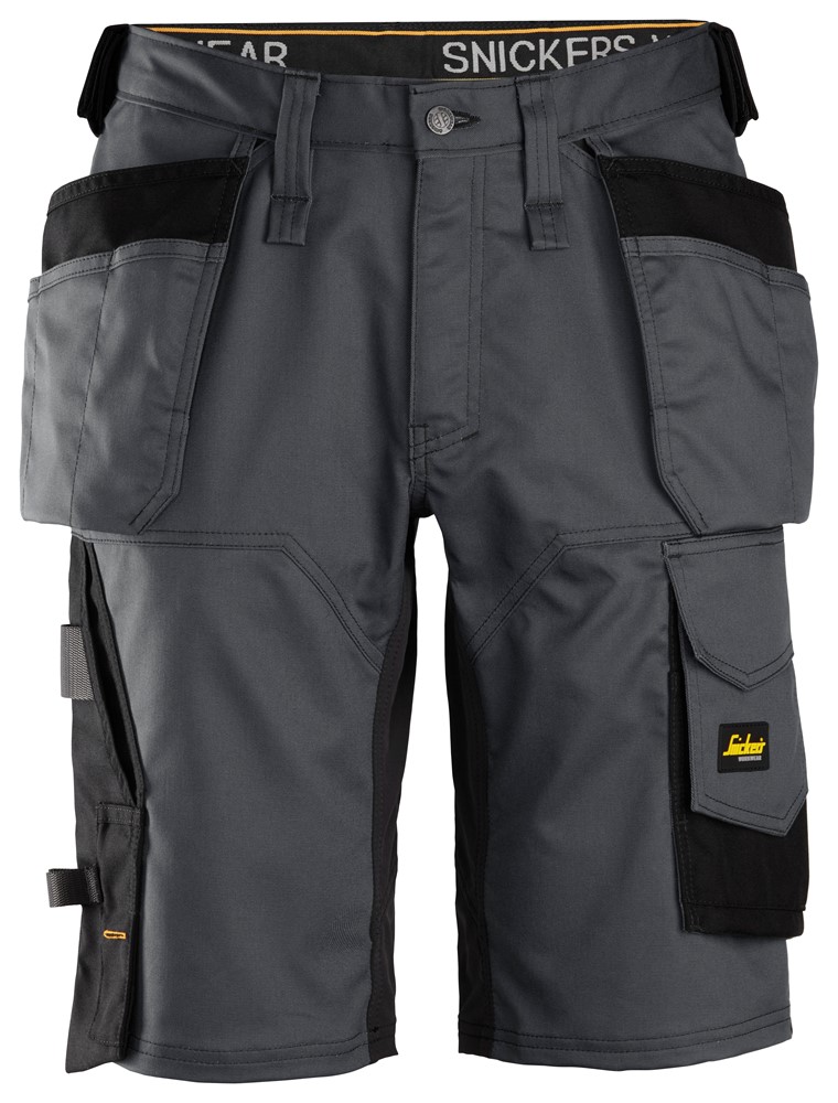6151 Pantalones cortos de trabajo elásticos de ajuste holgado AllroundWork con bolsillos flotantes gris acero/ negro