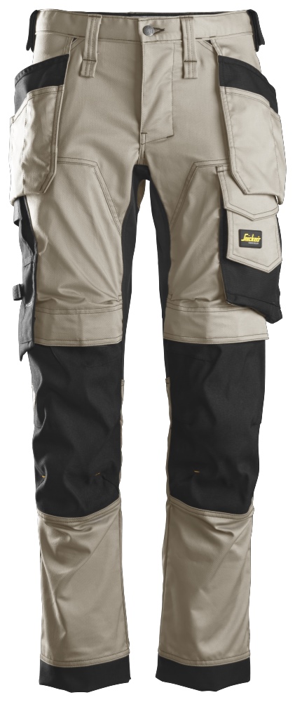 6241 Pantalones largos de trabajo elásticos AllroundWork Slim Fit con bolsillos flotantes color beige/ negro