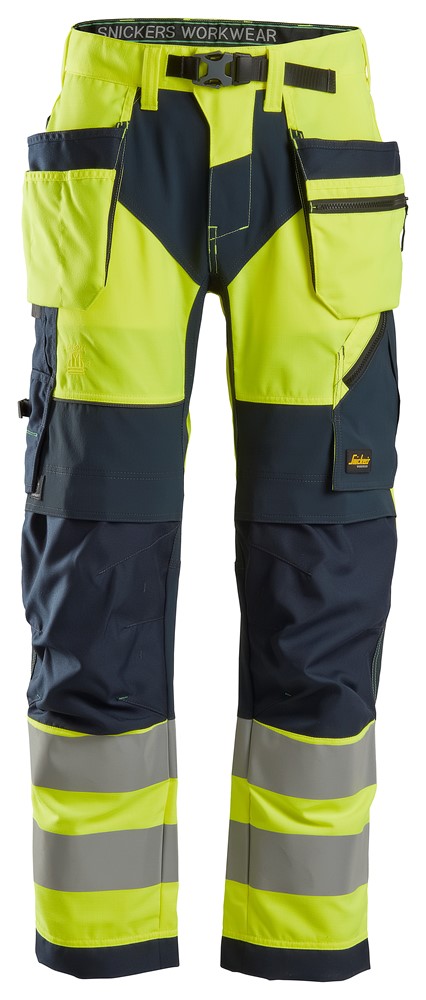 6932 Pantalones largos de trabajo de alta visibilidad clase 2 con bolsillos flotantes FlexiWork amarillo/ azul marino