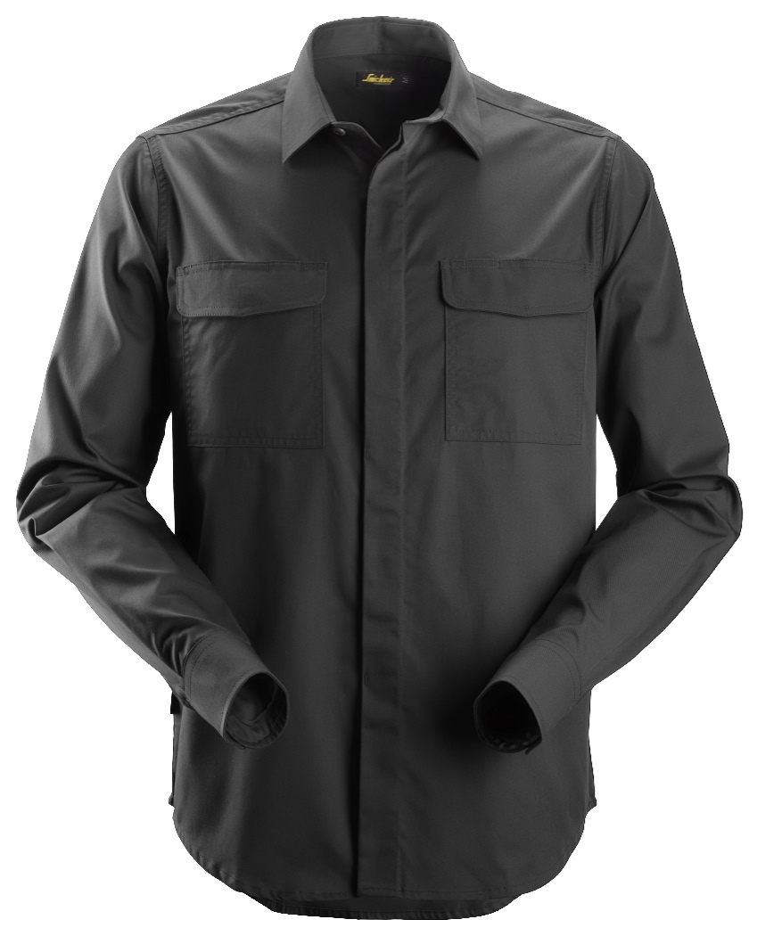 Ofrece funciones inteligentes como botones ocultos para proteger contra el roce cuando se trabaja cerca de superficies difíciles. Los dos bolsillos del pecho tienen compartimientos para bolígrafos.