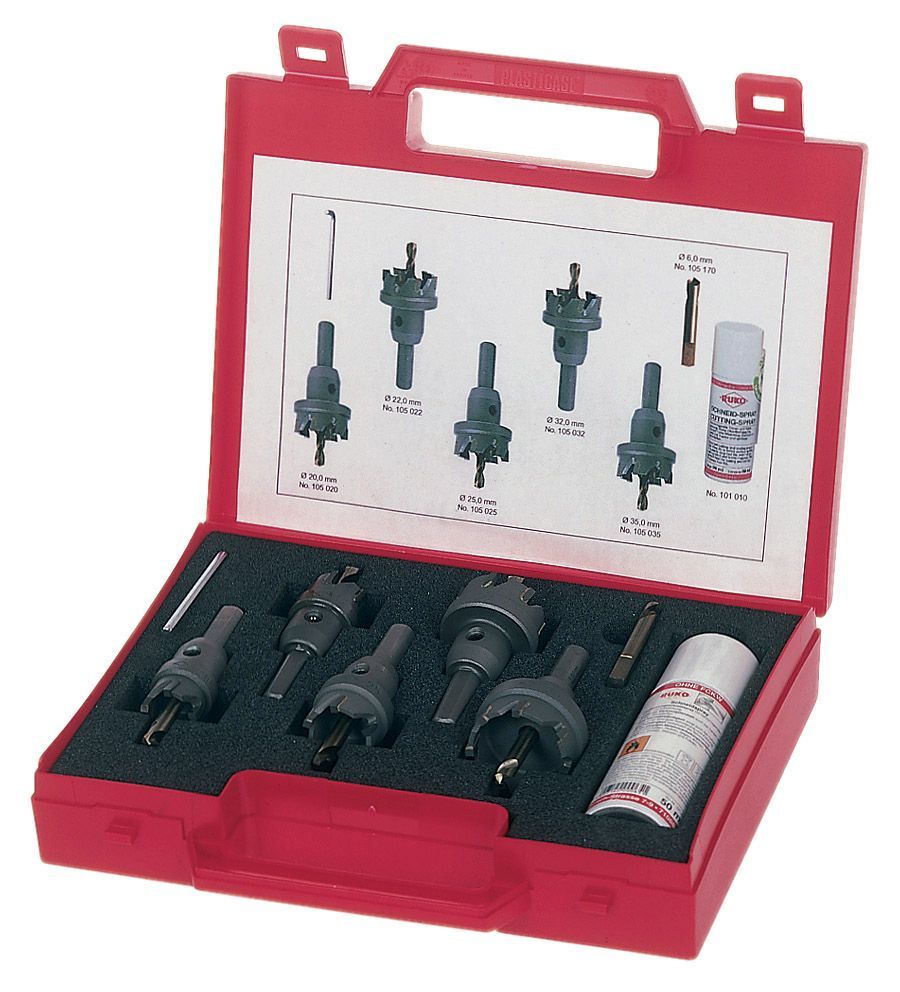 | Contenido | Coronas de Ø 20-22-25-32-35 mm + 1 spray corte 50 ml + 1 broca guía 6,0 mm HSS-Co 5., Coronas de Ø M16 (16,5 mm ), M20 (20,4 mm ), M25 (25,5 mm), M32 (32,5 mm) + 1 spray corte 50 ml + 1 broca guía 6,0 mm HSS-Co 5 |