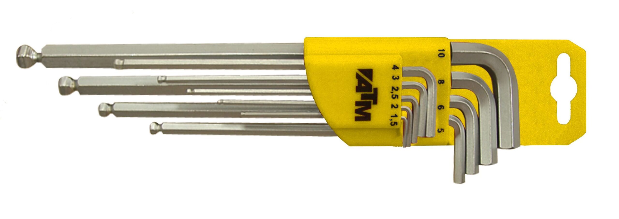 Juego de 10 llaves Allen bola largas en pulgadas (1/16″-1/2″)
