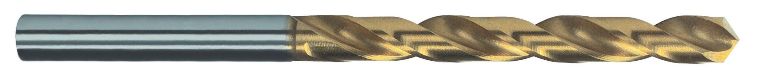 Ángulo de corte: 118º. Ángulo de espiral: 20-30º. Ø-tolerancia: h8. Superficie nitruro de titanio.